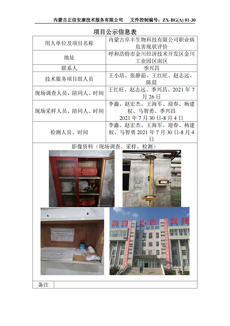 內(nèi)蒙古阜豐生物科技有限公司職業(yè)病危害現(xiàn)狀評價(jià)報(bào)告項(xiàng)目公示信息表