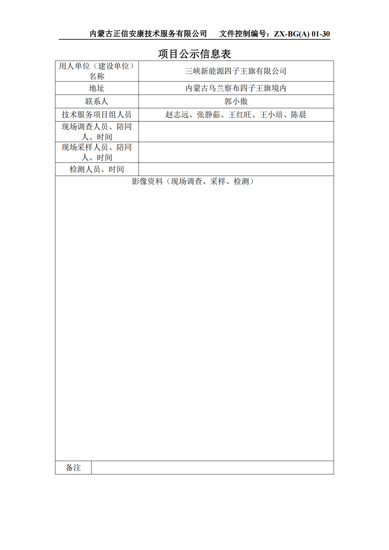 三峽烏蘭察布新一代電網(wǎng)友好綠色電站示范項(xiàng)目(一期)職業(yè)病危害預(yù)評價(jià)報(bào)告項(xiàng)目公示信息表