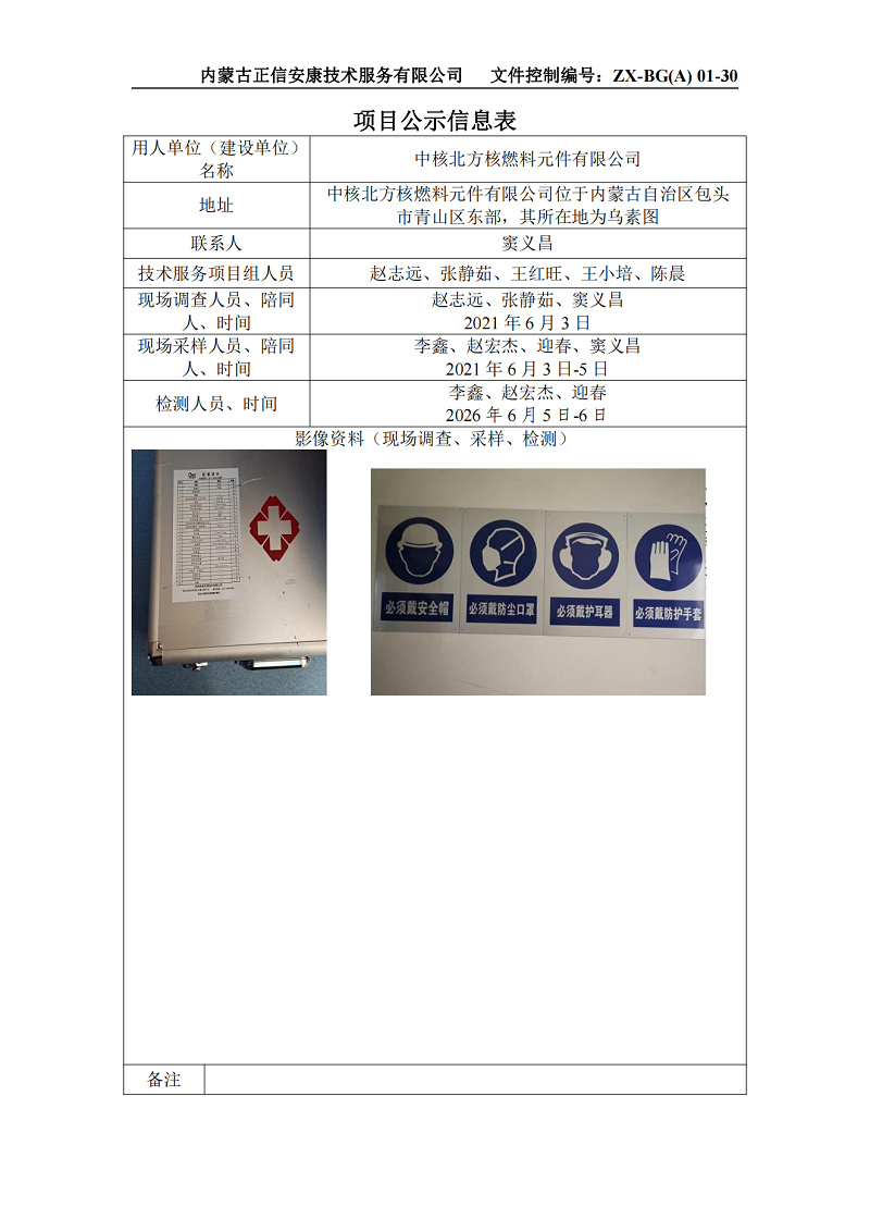 中核北方核燃料元件有限公司鈣質(zhì)品廠安全改造項(xiàng)目職業(yè)病危害控制效果評價(jià)報(bào)告項(xiàng)目公示信息表