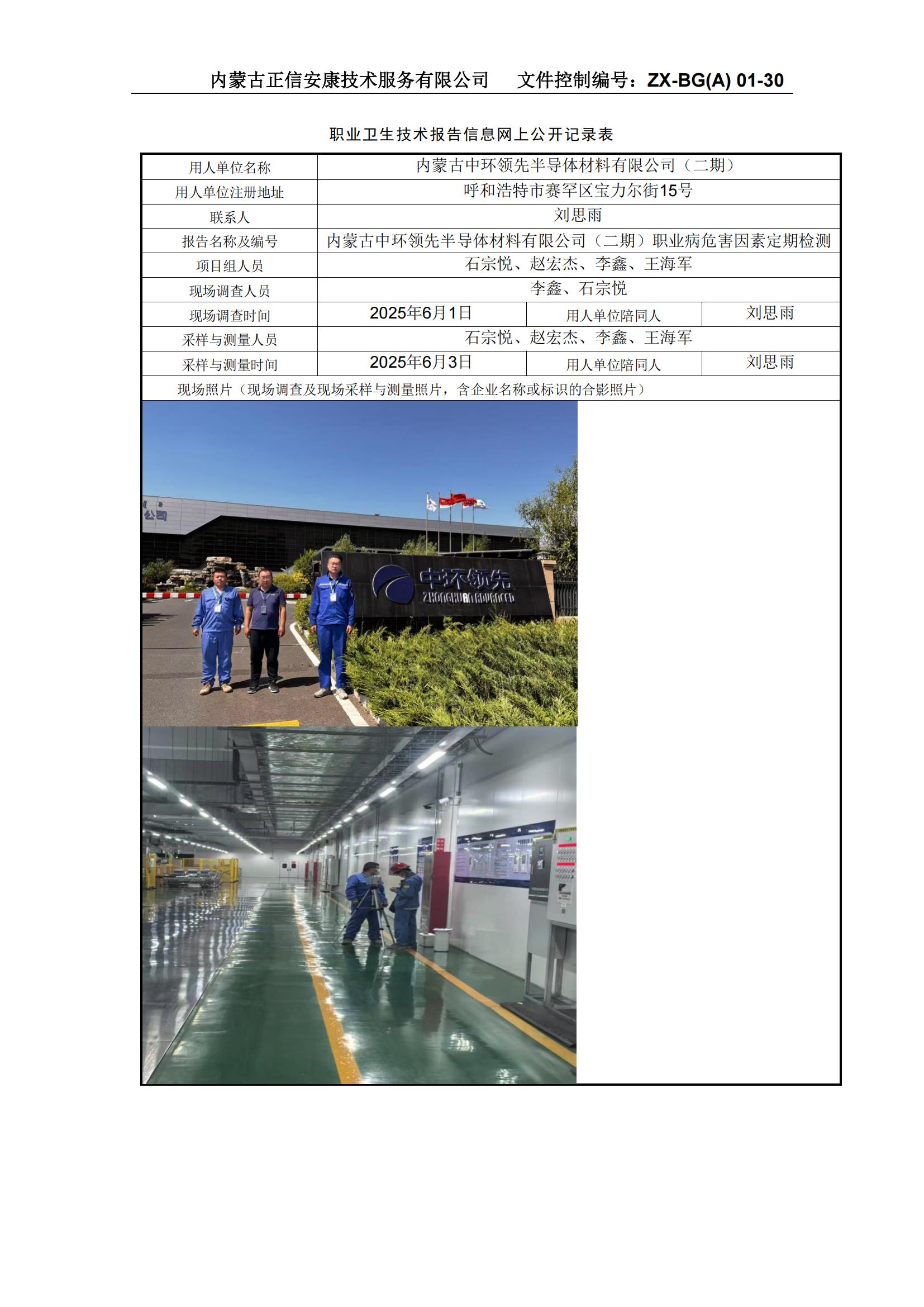 內(nèi)蒙古中環(huán)領(lǐng)先半導(dǎo)體材料有限公司(二期)職業(yè)病危害因素定期檢測(cè)