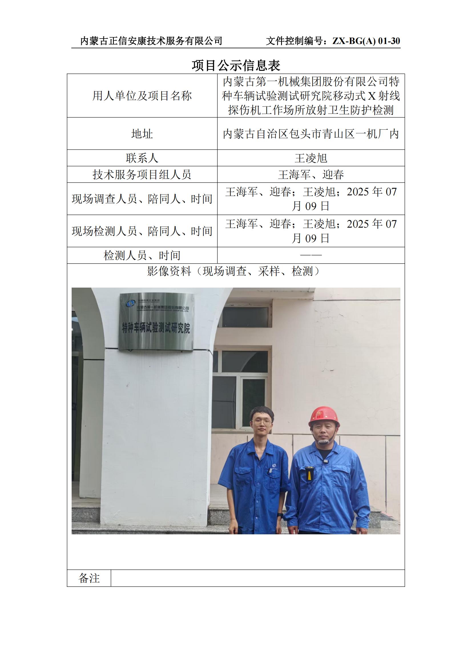內(nèi)蒙古第一機械集團股份有限公司特種車輛試驗測試研究院移動式X射線 探傷機工作場所放射衛(wèi)生防護檢測
