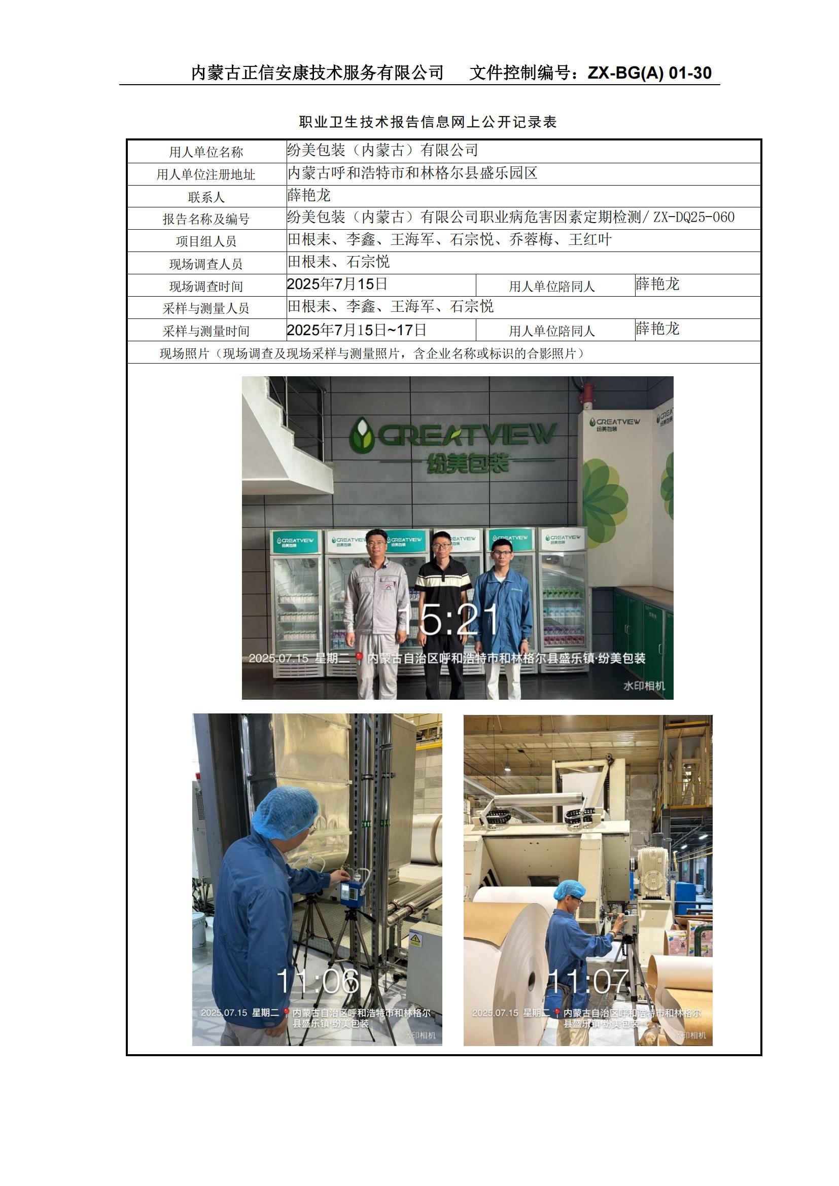 紛美包裝(內(nèi)蒙古)有限公司職業(yè)病危害因素定期檢測
