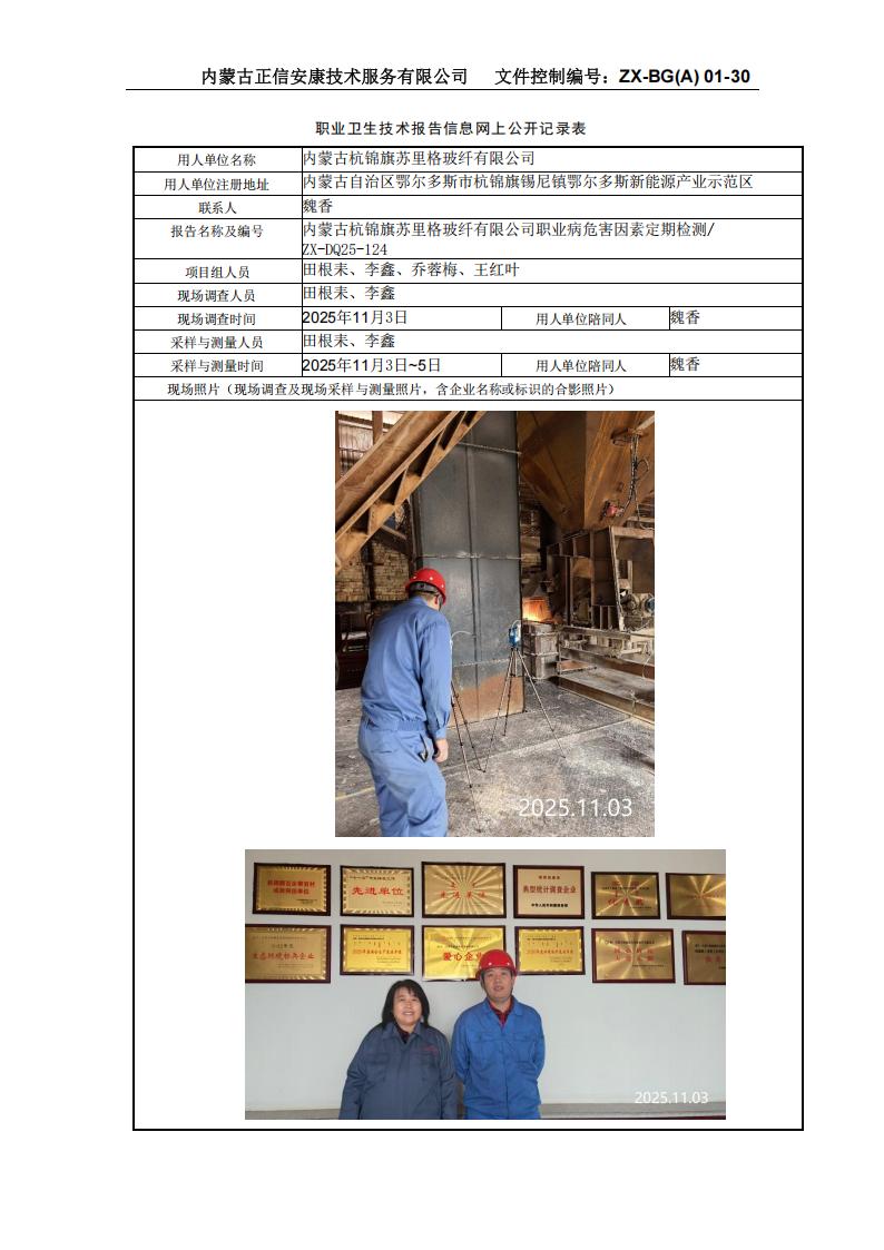 內(nèi)蒙古杭錦旗蘇里格玻纖有限公司職業(yè)病危害因素定期檢測(cè)